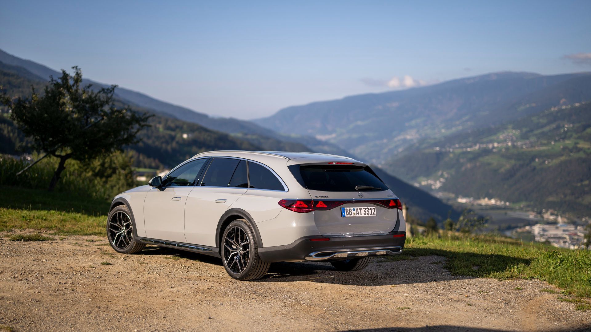 The E 450 All-Terrain's off-road focus includes standard 19-inch wheels (20-inch optional), unique bumpers with chrome underride guards, and dark grey wheel arch cladding. Ground clearance and approach angles favour light terrain navigation - gravel roads, cottage trails, and winter conditions where the air suspension can raise the vehicle for additional clearance.